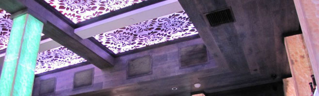 Located in Apopka Florida. Impact Lighting Inc. fabricated and installed custom its popular Galaxy Design System lit wall panels throughout the new expansion project. Impact used Color Changing LEDs in the wall pattern inorder to create a beautiful colorful glow at new bar area. These colorful treatments along with the concealed wall lighting and other lighting details created one of Impact Lighting Inc.'s most memorable restaurant designs.